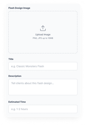 Upload your flash and wannados and let clients browse, book, and pay instantly. You set the price and keep 100% of what you earn.