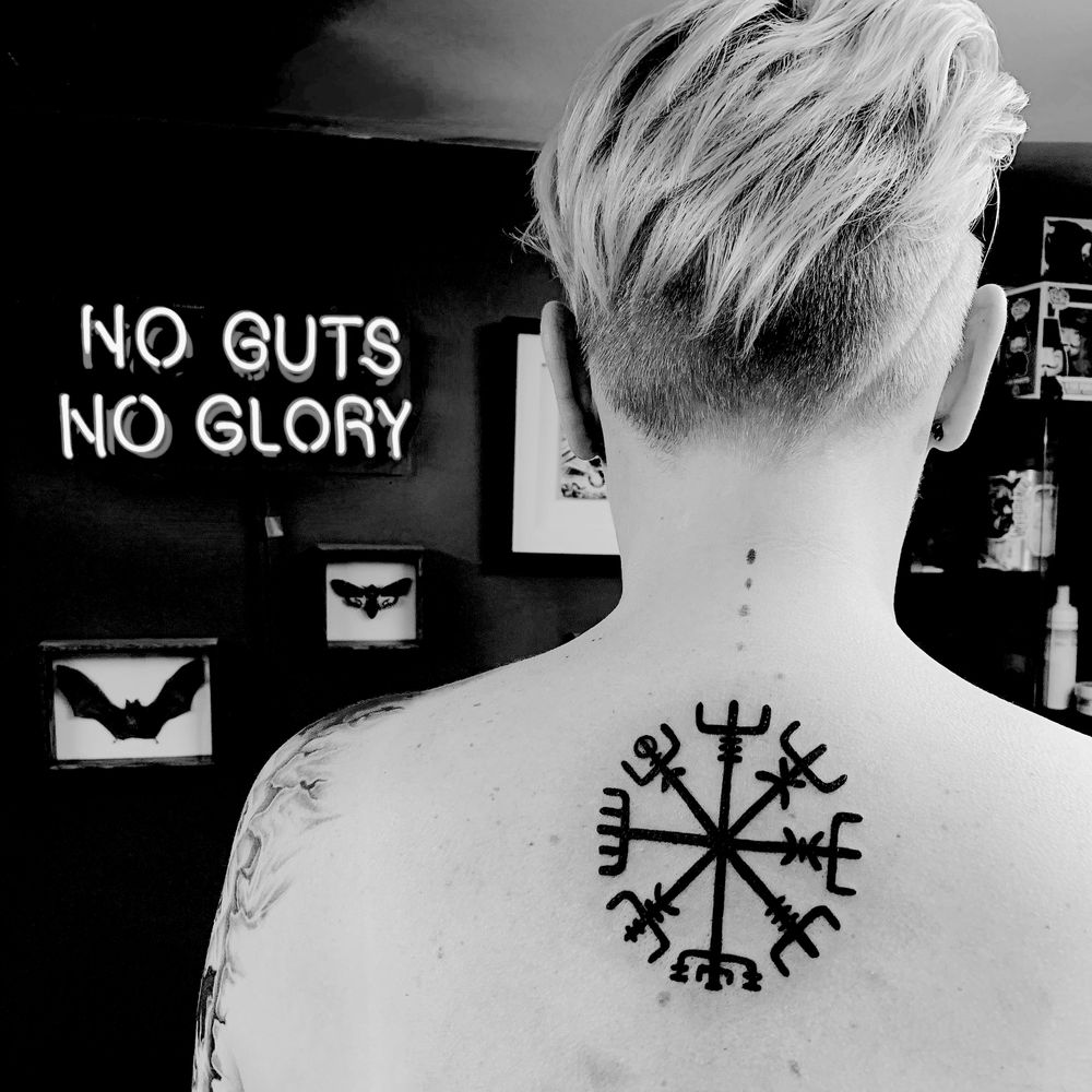 Viking Compass by @blackworkcharlie #blackwork #viking #vegvisir #blackworktattoo #blackworkers #blackworktattoo #blackworkers #apprentice