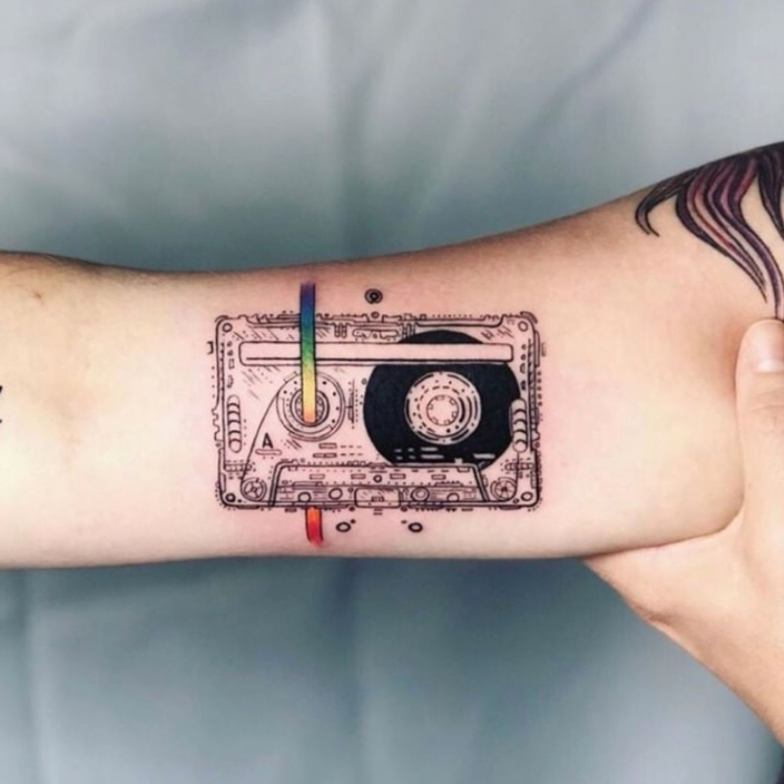 #Cassette tape tattoo by Miko #minimalistic #blacklines