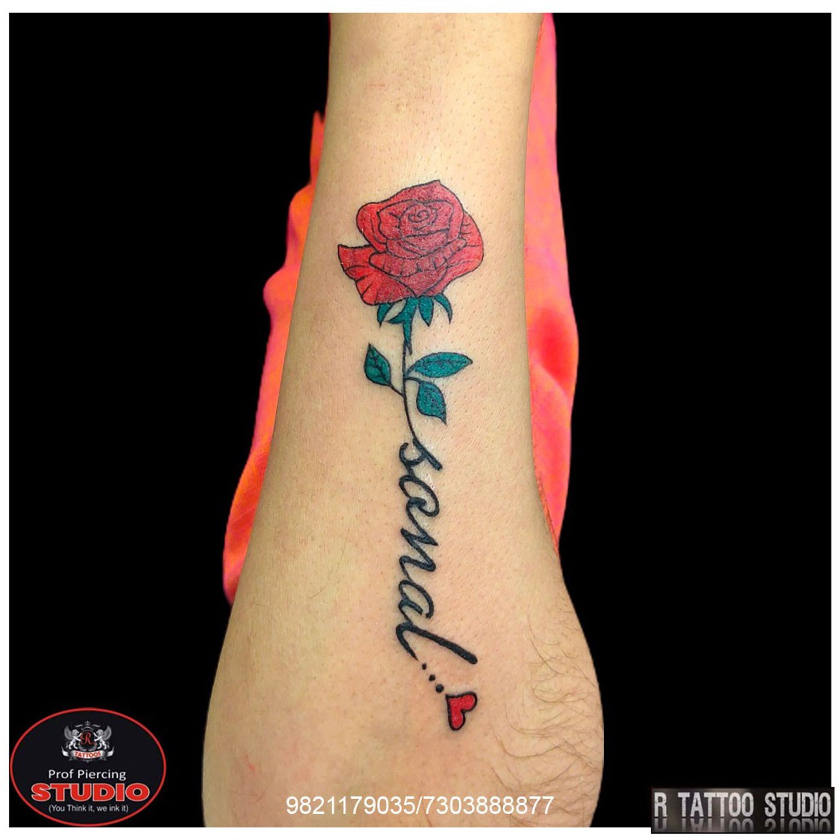 Name With Rose Tattoo.. #name #rose #rosetattoo #nametattoo #love #roseflower #redrose #tattoo #tattooed #tattooing #ink #inked #rtattoo #rtattoos #rtattoostudio #ghatkopar #ghatkoparwest #mumbai #india