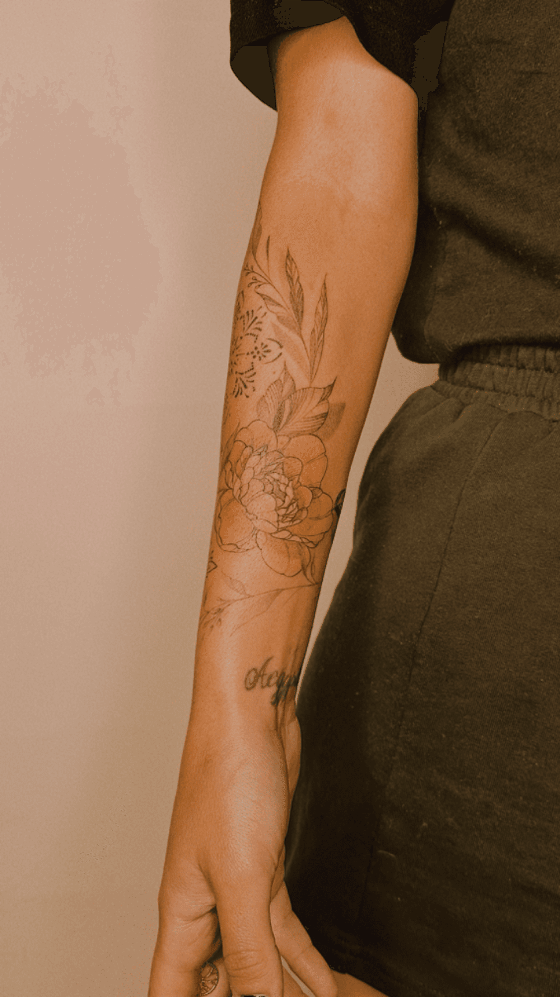 Colourful fine-line floral extension to existing ornaments, free-hand design