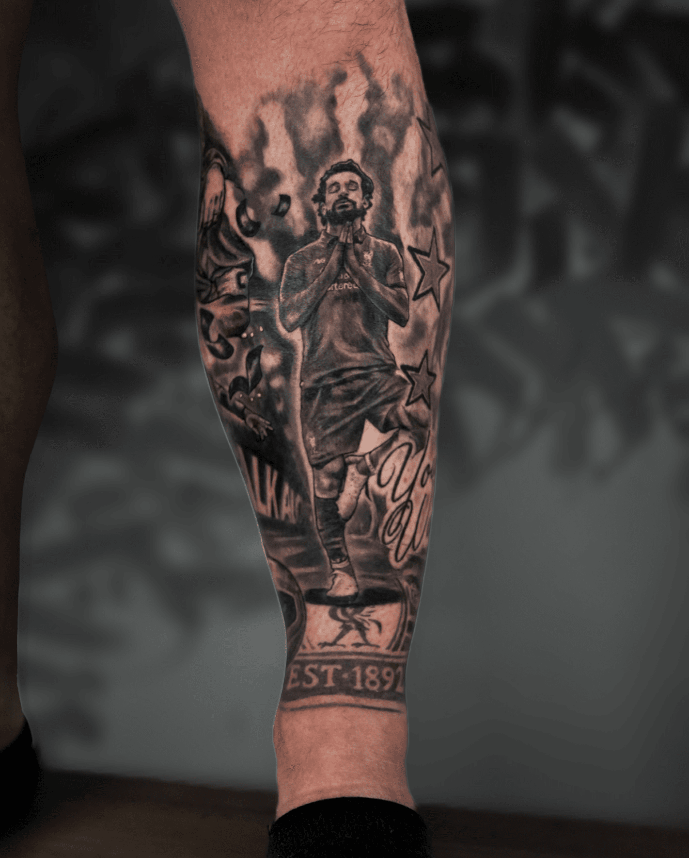 Liverpool FC leg sleeve including progress featuring Mo Salah , Steven Gerrard , Trent Alexander Arnold and Jamie Carragher to come . Stay tuned !