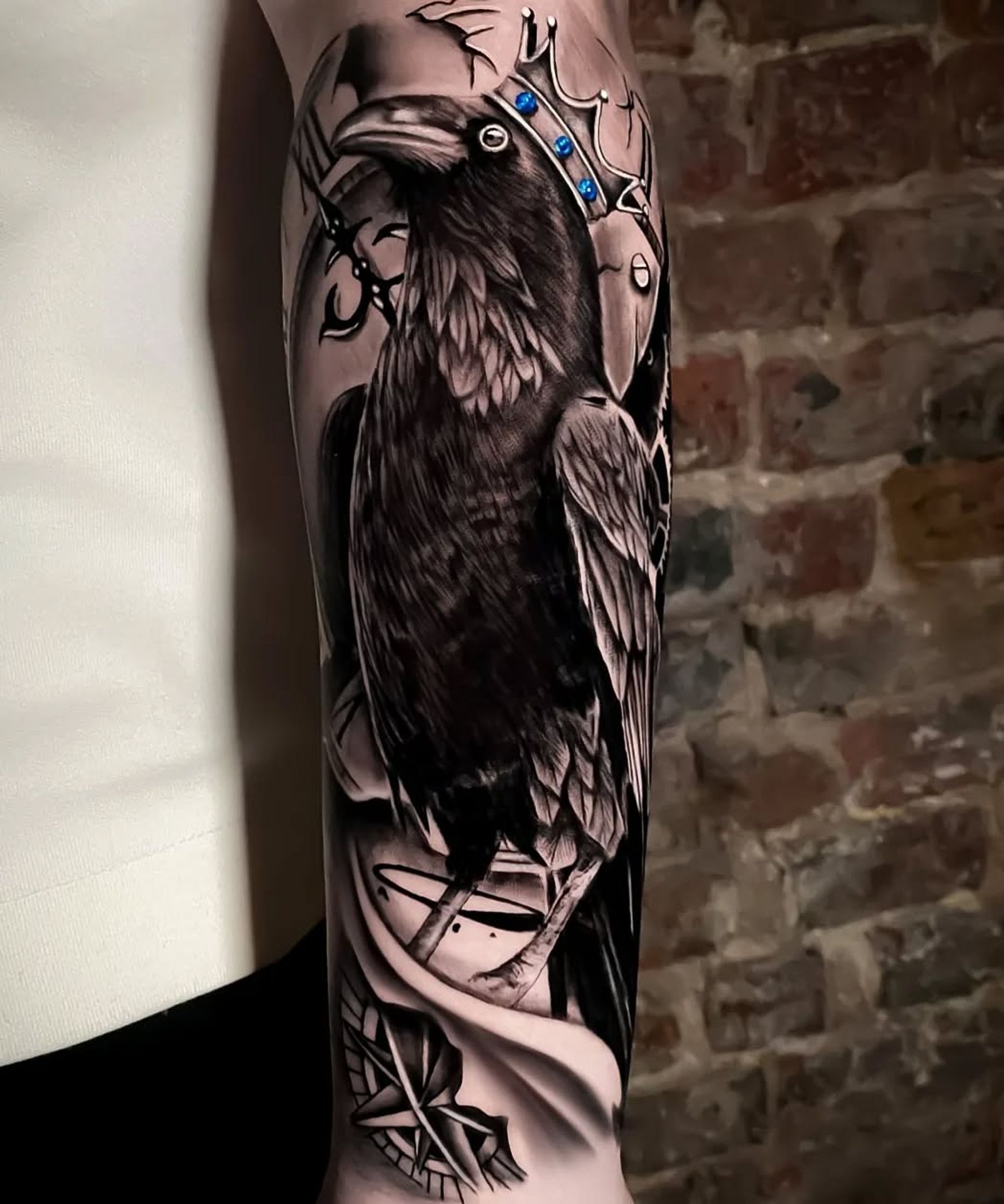 King of ravens 🤴🏽 @dieforarttattoo #raventattoo #crowntattoos