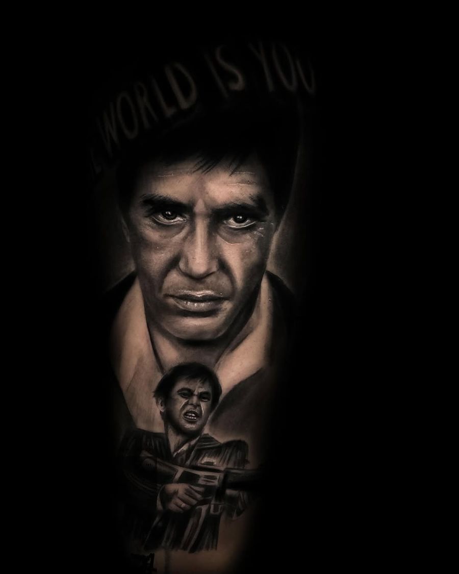 Scarface, the world is yours #scarface #scarfacetattoo #sandiegotattoo #tattoosandiego #sandiegotattooartist