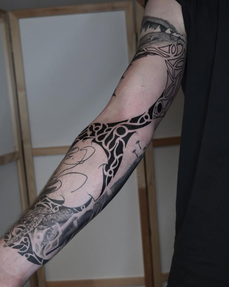 #tattoo #tattooideas #blackwork #sleevetattoo #armsleevetattoo #ornamentaltattoo #planttattoo #inked #tattooinspiration #micromosaic