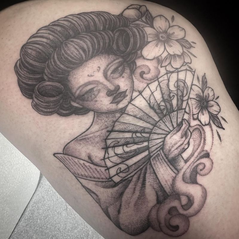 Geisha girl from today - - - - - - #geisha#geishagirl#geishatattoo#geoshagirltattoo#jap#japaense#dotwork#dotworkers#dotworktattoo#dotworktattoos#dotworktattooers#ladyface#ladytattoo#ladyfacetattoo#floral#floraltattoo#japtattoo
