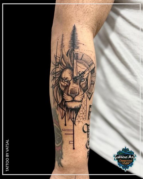 geometric lion #liontattoo #liontattoodesign #geometrictattoo #geometricliontattoo #forarmtattoo #tattooinlindon #lion #tattoo #tattooideas #tattooed