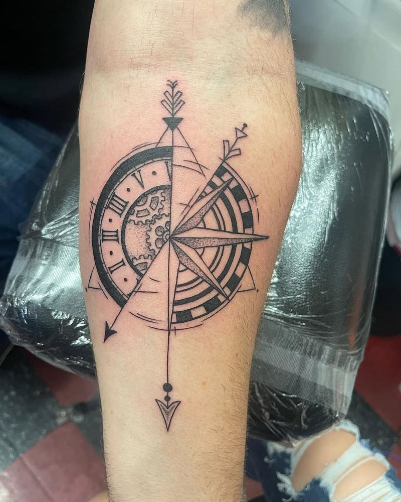 #tattoo #blackwork #blackworktattoo #tattoos #tattooartist #tattooideas #tattooflash #flashart #flashtattoo #dotwork #dotworktattoo #compasstattoo #travel #travelling #traveltattoo #clock #time #clocktattoo