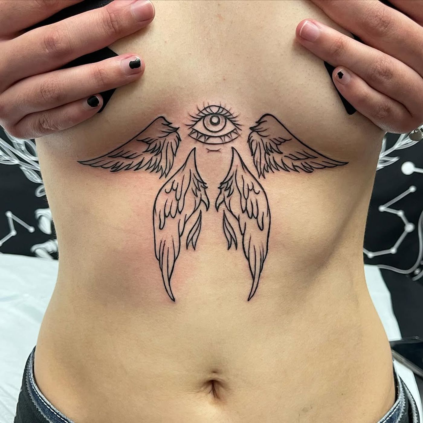 Did this super cool seraphim a while ago! Always awesome when a client sits like a rock through a tough piece. Under boob tats are fun; let’s do more!