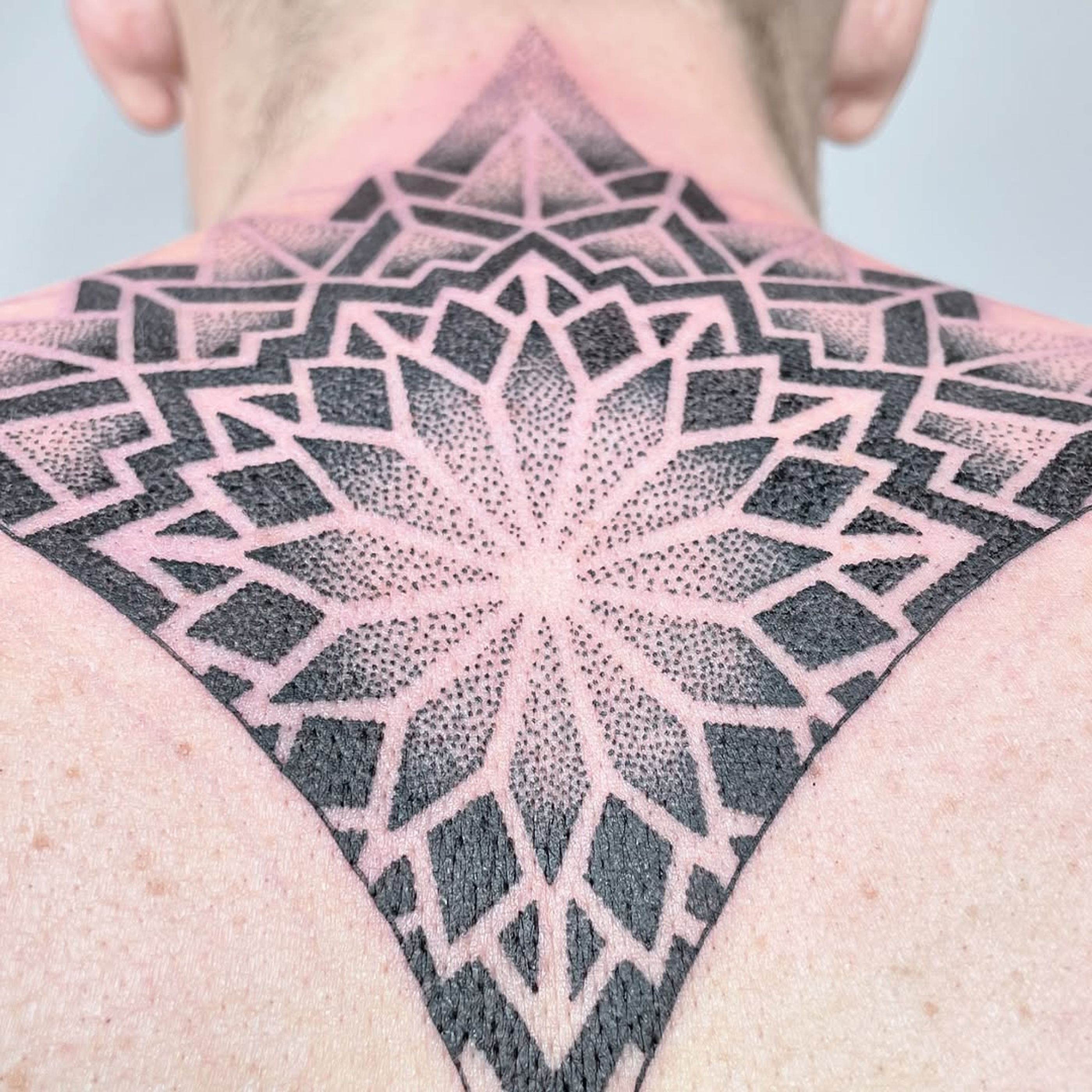. . . . . #blackwork #dotworktattoos #geometricatattooapp #geometrictattoos #mandalatattoo