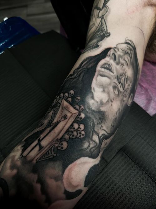 #TattooSleeve #BlackDeathTattoo #DarkArt #TattooInProgress #PlagueDoctor #BlackAndGreyTattoo #TattooArtist #MacabreTattoo #RealismTattoo #AlbuquerqueTattoo