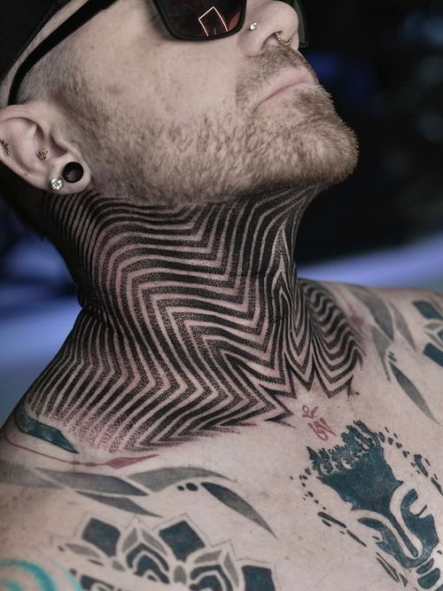 Neckpiece, done within 2 consecutive days. #ornamentalink #ilyacascad #dotworktattoo #blackworktattoo #necktattoo #lasvegastattooartist