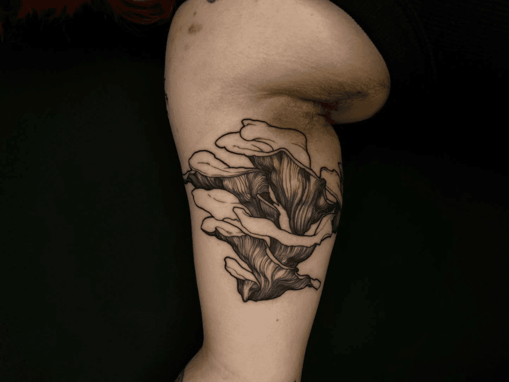 #queerartist #vegantattoo #inked #londontattoo #delicatetattoo #fineline #botanical #botanicaltattoos #mushrooms #mushroomtattoo #oystermushrooms