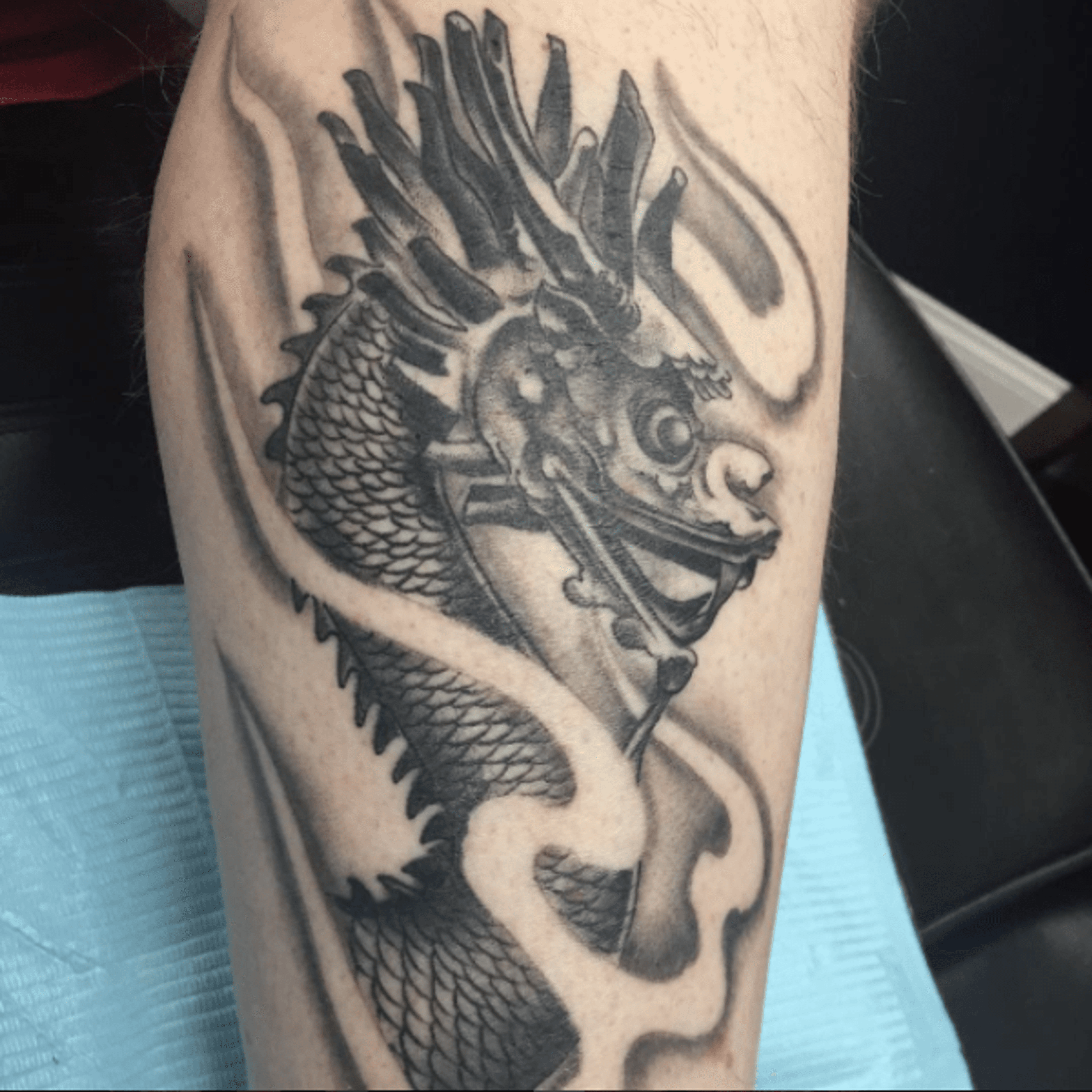 Black and grey dragon #blackandgreytattoo #dragontattoo #dragon #blackandgrey #vintageinktattoo