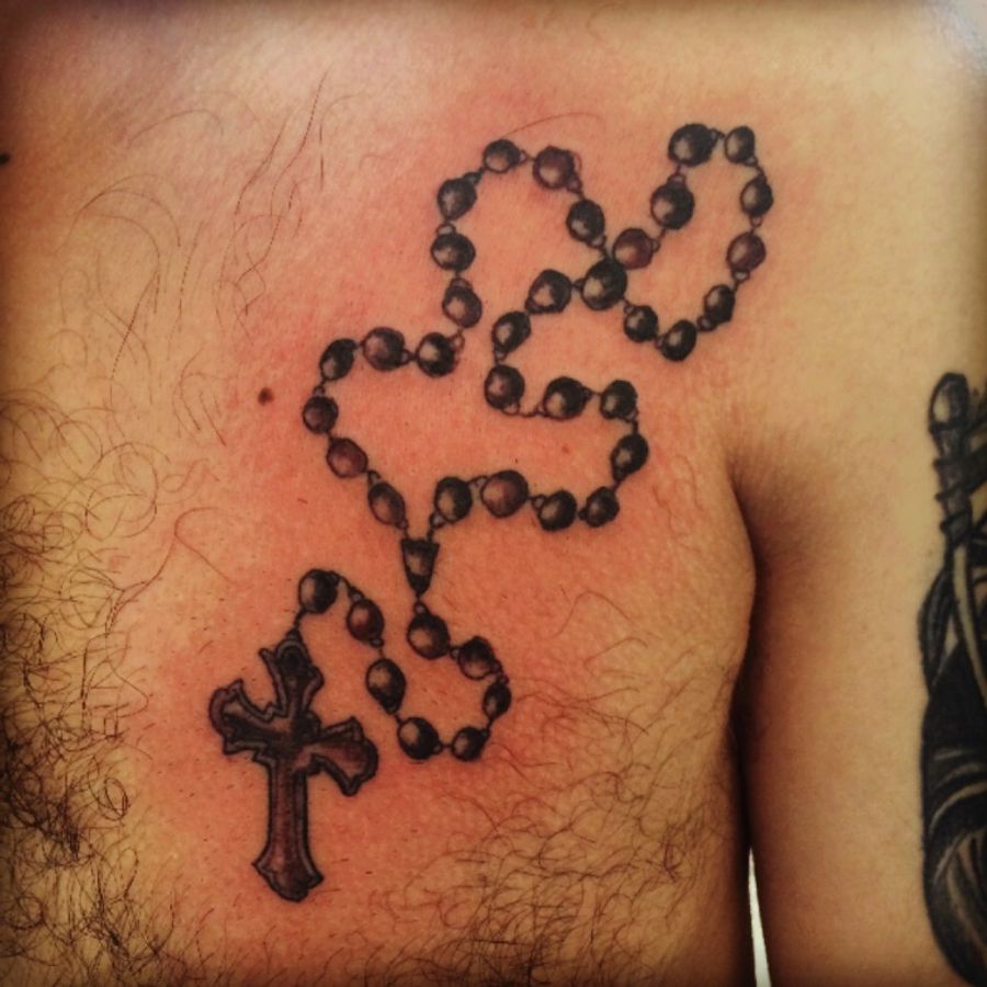A rosary tattoo on the chest hope you like it #jordan #rosary #tattoo