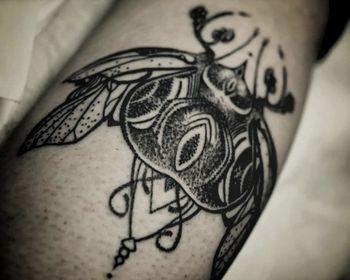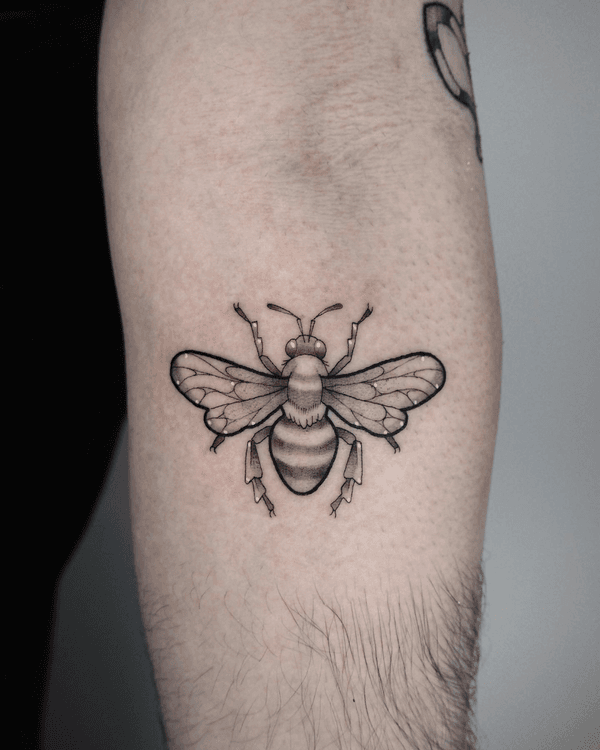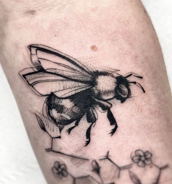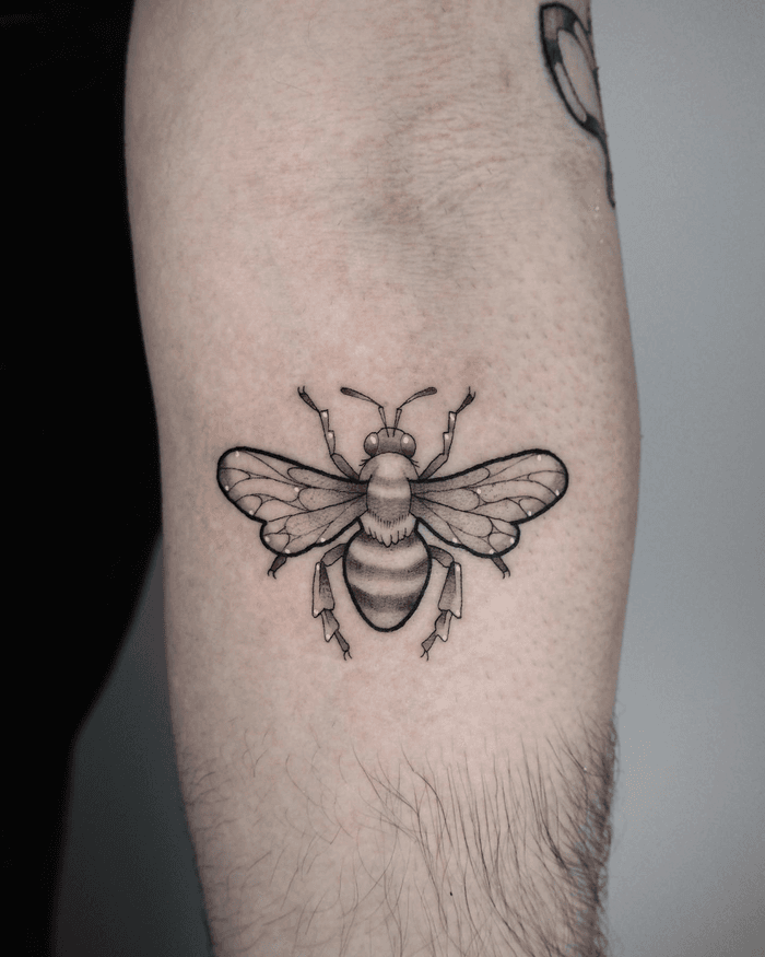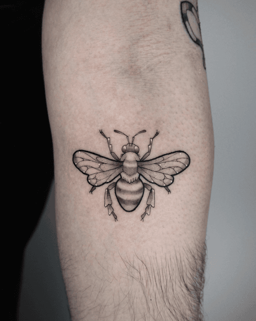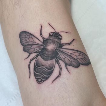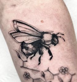 Bee tattoo art featuring honeybees, bumblebees, queen bees, and pollinator compositions. Explore realistic, traditional, and geometric bee tattoo designs.