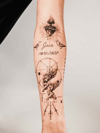 Forearm tattoo placement ideas including inner forearm, outer forearm, and wraparound designs. Browse script, portraits, nature scenes, and geometric artwork suited for this versatile canvas.