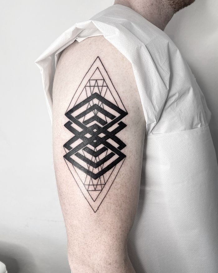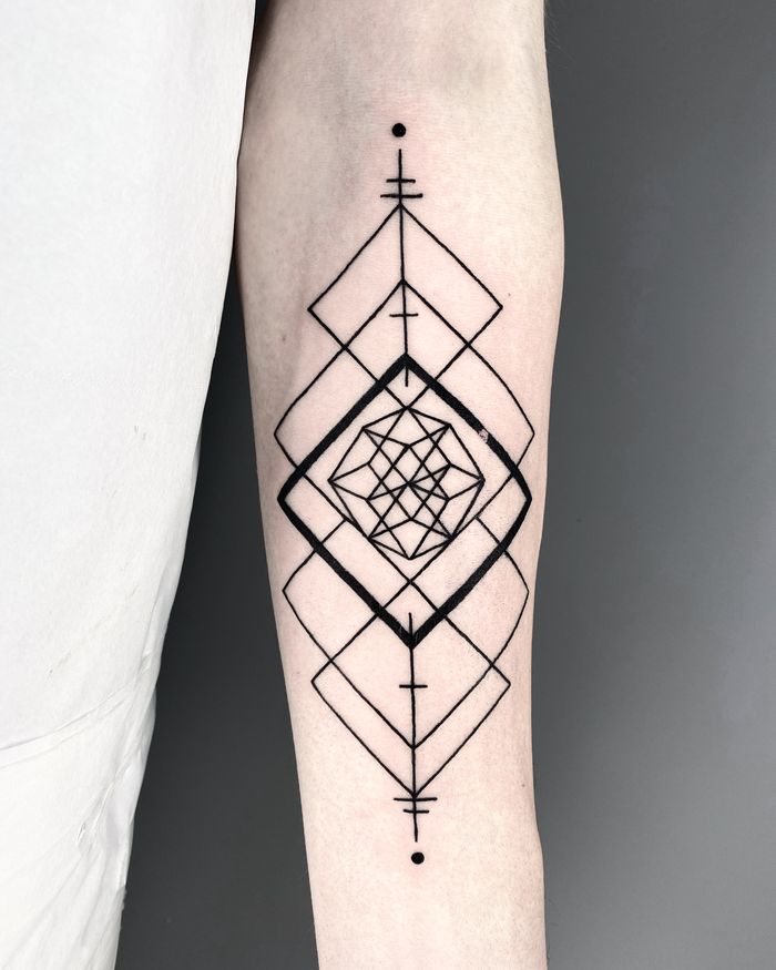 Geometric tattoo designs featuring sacred geometry, dotwork patterns, mathematical shapes, and symmetrical compositions. Explore mandalas, platonic solids, and geometric animal designs.