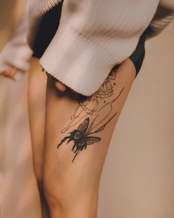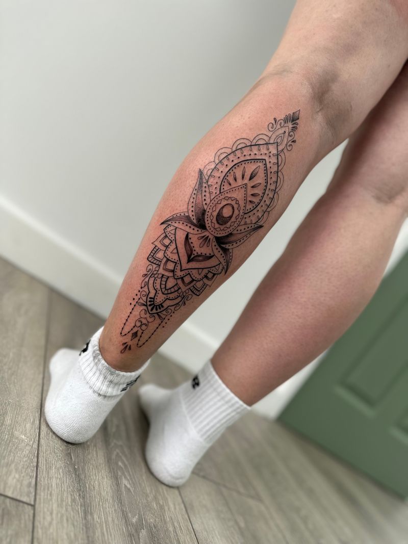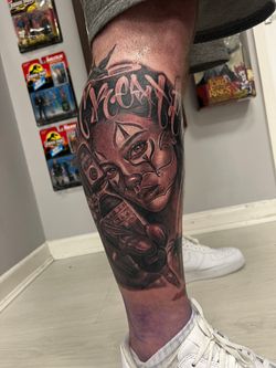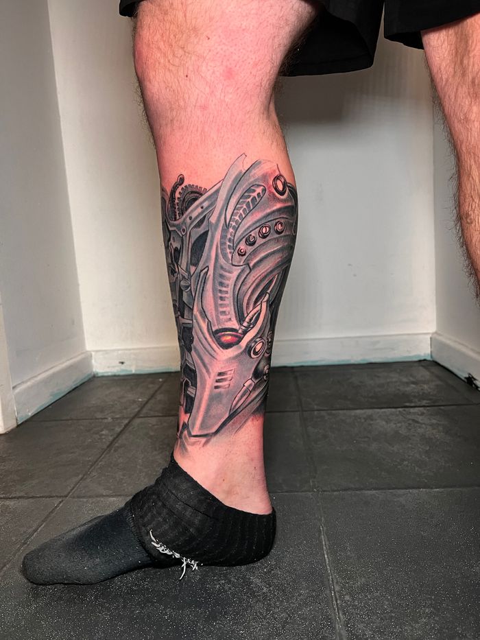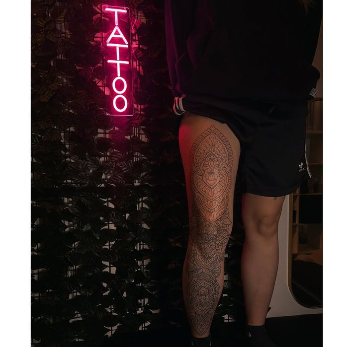 Leg tattoo artwork from full leg sleeves to standalone thigh and calf pieces. Explore Japanese leg sleeves, realistic portraits, nature themes, and ornamental leg designs.