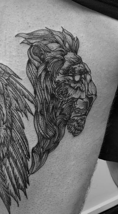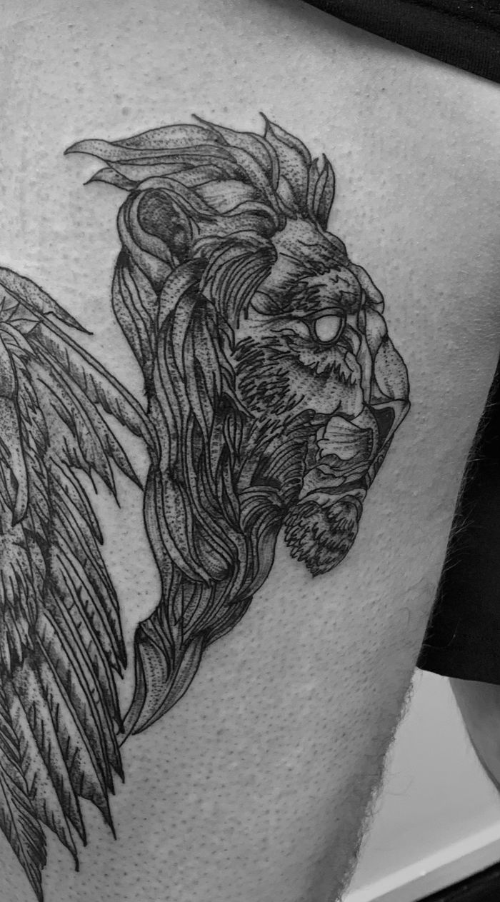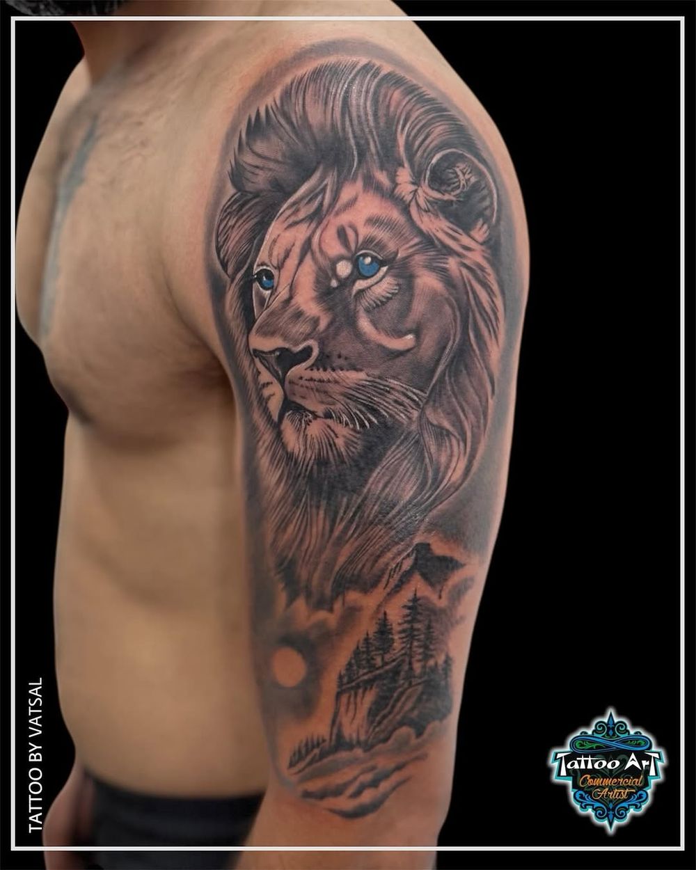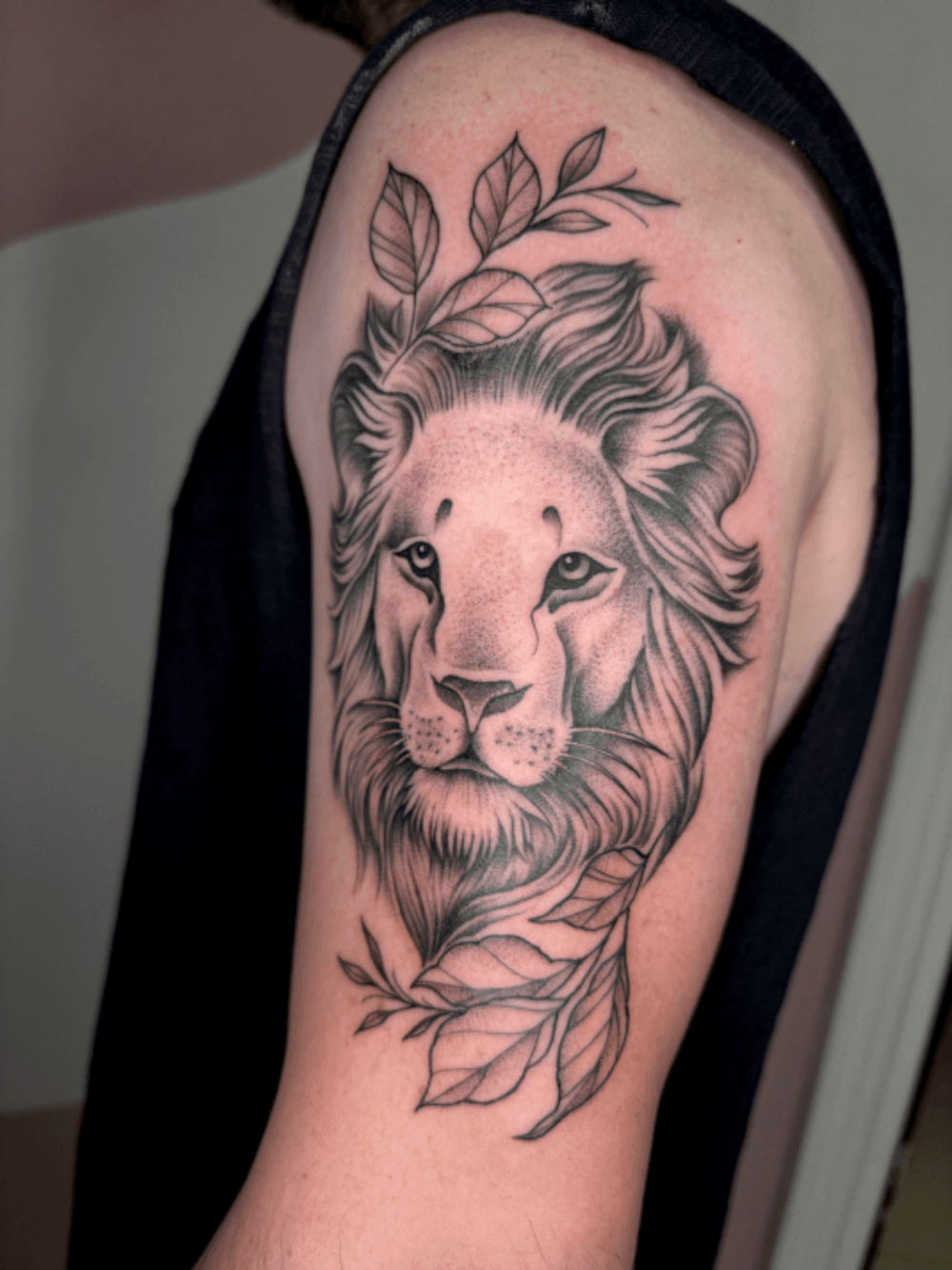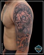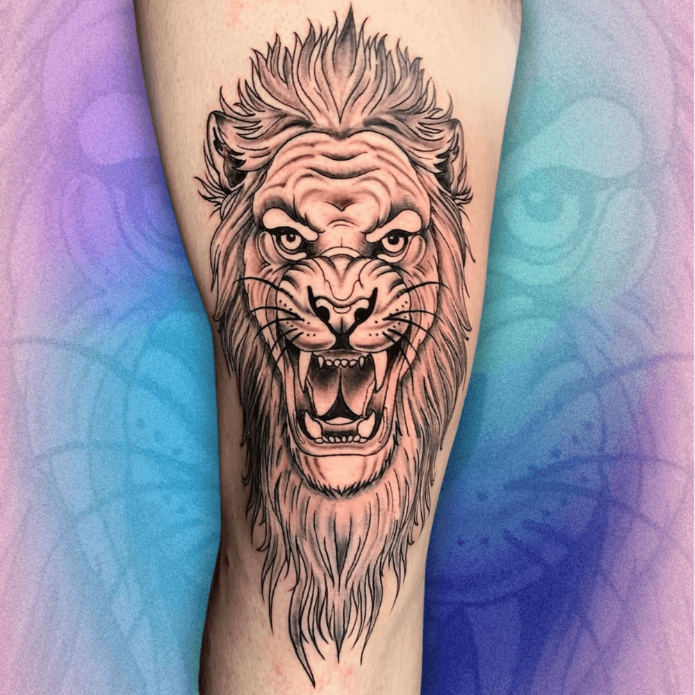 Majestic lion tattoo designs including realistic portraits, geometric lions, tribal lions, and crowned lion compositions. Explore bold and detailed lion tattoo artwork.