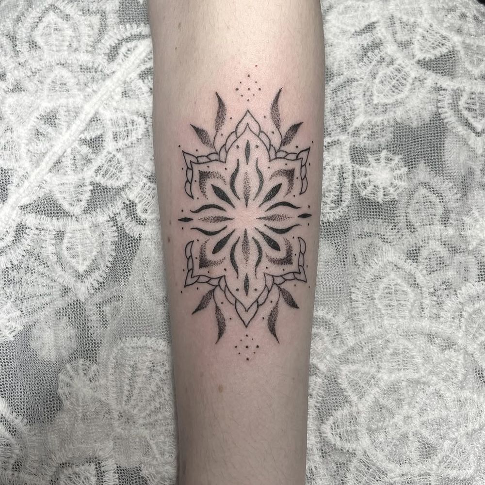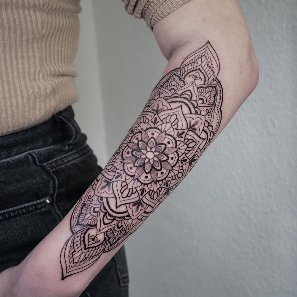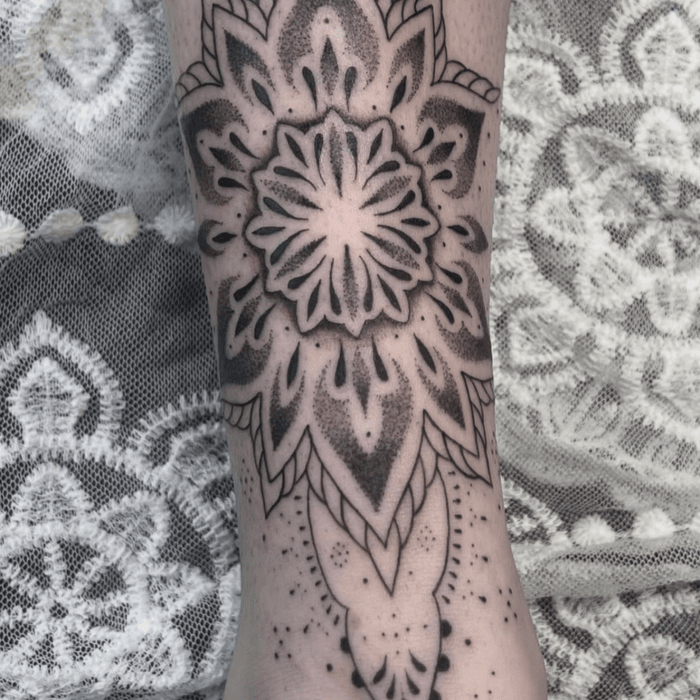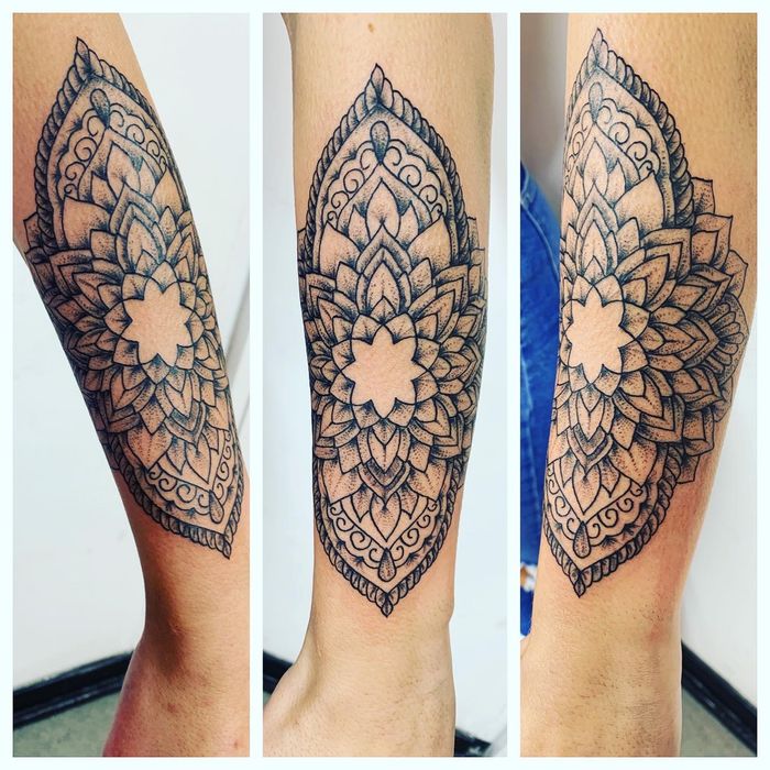 Intricate mandala tattoo art featuring sacred geometry patterns, lotus mandalas, dotwork mandalas, and ornamental circle compositions. Explore spiritual and meditative tattoo designs.