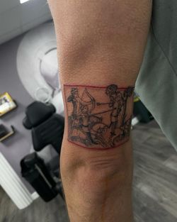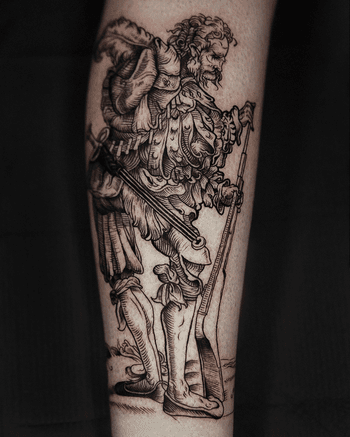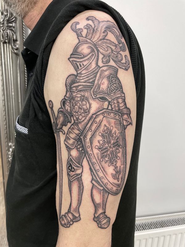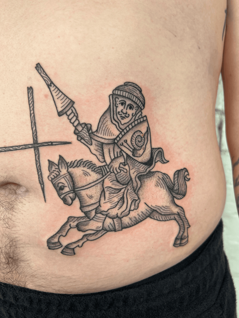 Medieval-themed tattoo art featuring knights, castles, heraldry, and Dark Ages imagery. Explore crusader crosses, coat of arms, swords, and medieval manuscript-inspired designs.