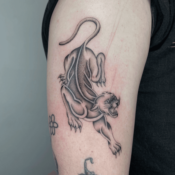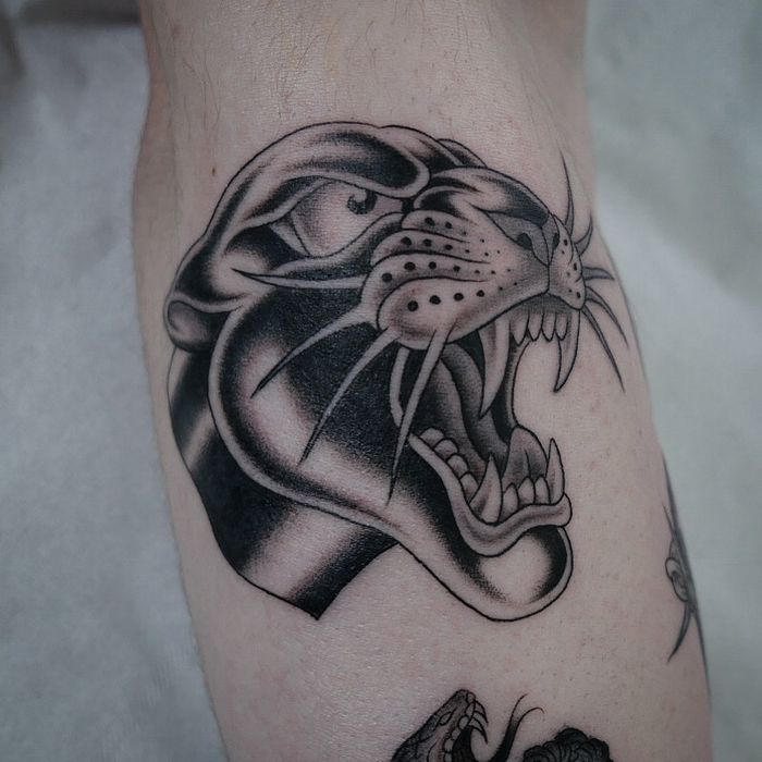 Traditional crawling panther tattoo designs and modern black panther artwork. Explore American traditional panthers, neo-traditional big cats, and realistic panther portraits.