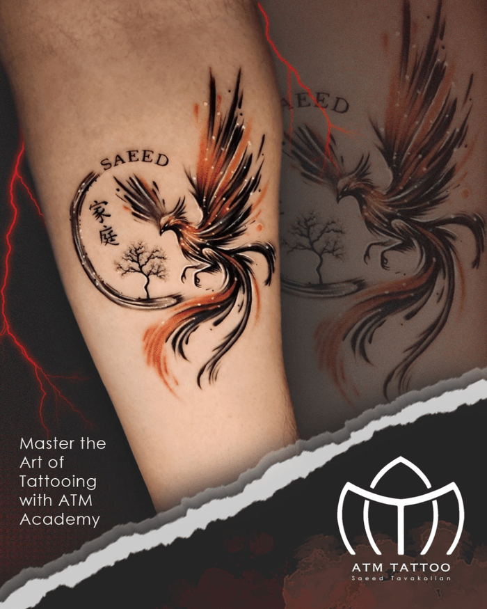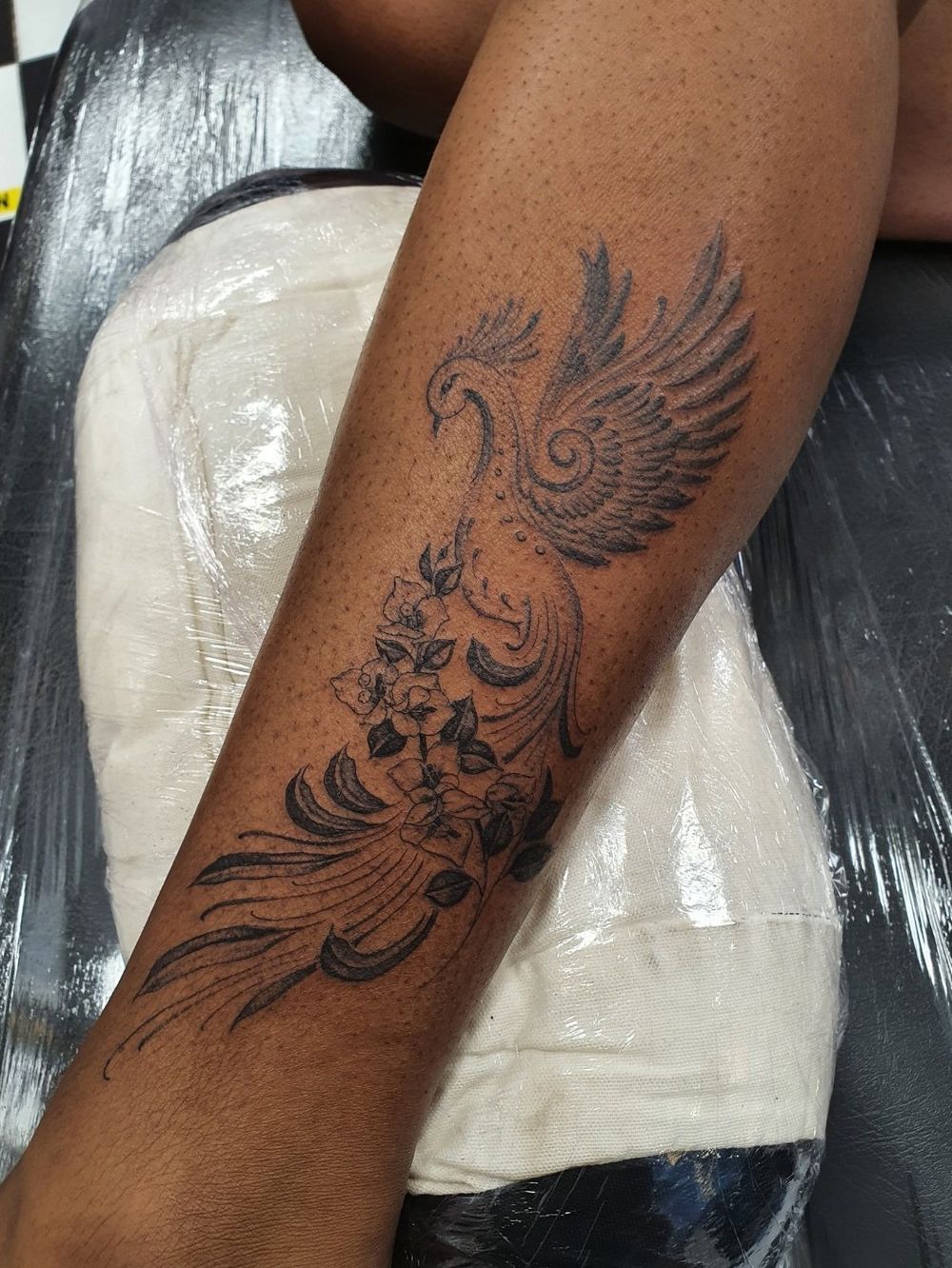 Phoenix bird tattoo art symbolizing rebirth, transformation, and resilience. Explore Japanese phoenix (hō-ō), tribal phoenix, realistic fire bird, and ornamental phoenix designs.