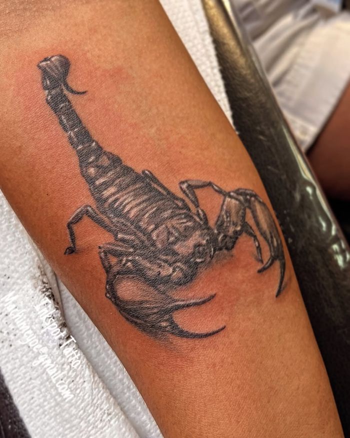 Scorpion tattoo art featuring realistic scorpions, tribal designs, and Scorpio zodiac interpretations. Explore traditional, black and grey, and ornamental scorpion artwork.