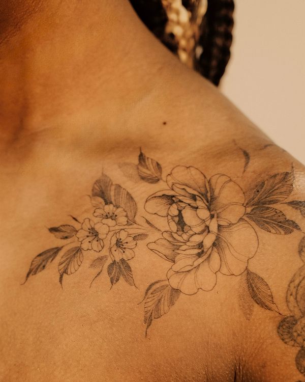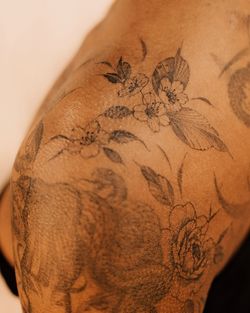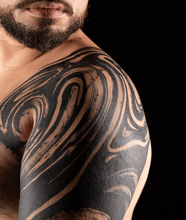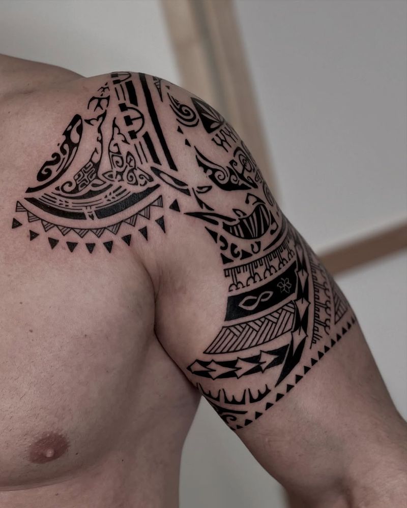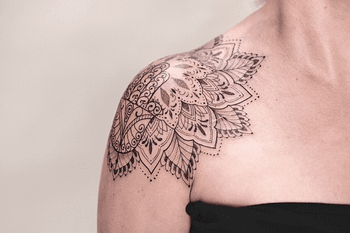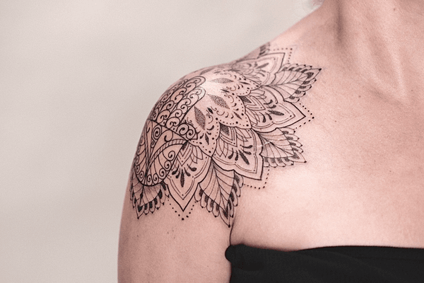 Shoulder tattoo placement featuring cap designs, shoulder blade pieces, and shoulder-to-arm transitions. Browse tribal, floral, geometric, and traditional shoulder artwork.