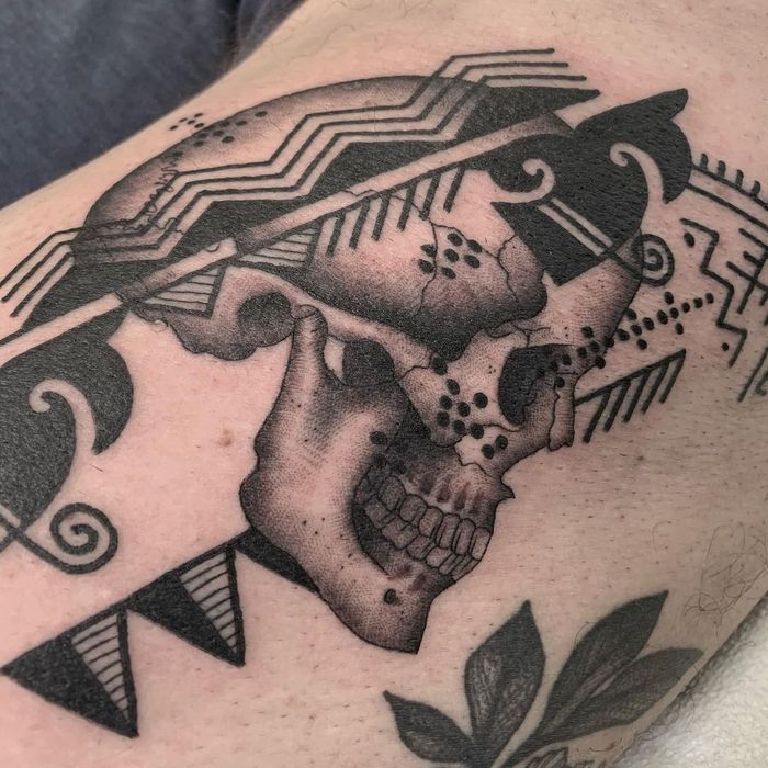 Skull tattoo art from traditional sugar skulls to hyper-realistic human skulls. Browse skull and crossbones, floral skulls, mechanical skulls, and Day of the Dead calavera designs.