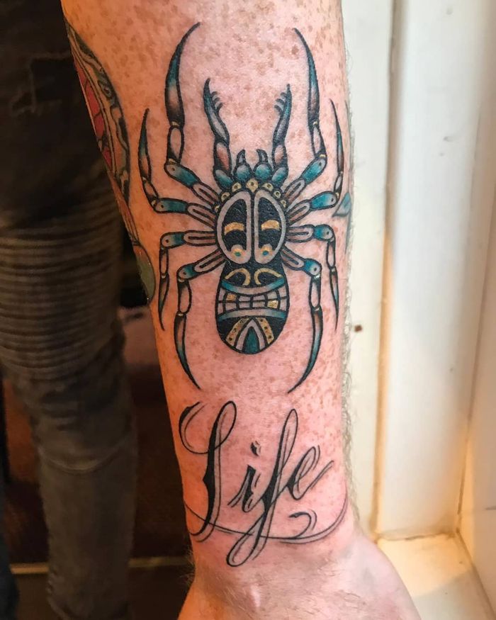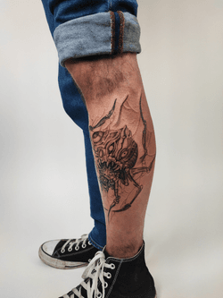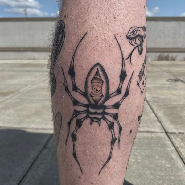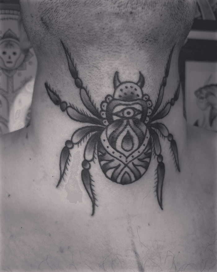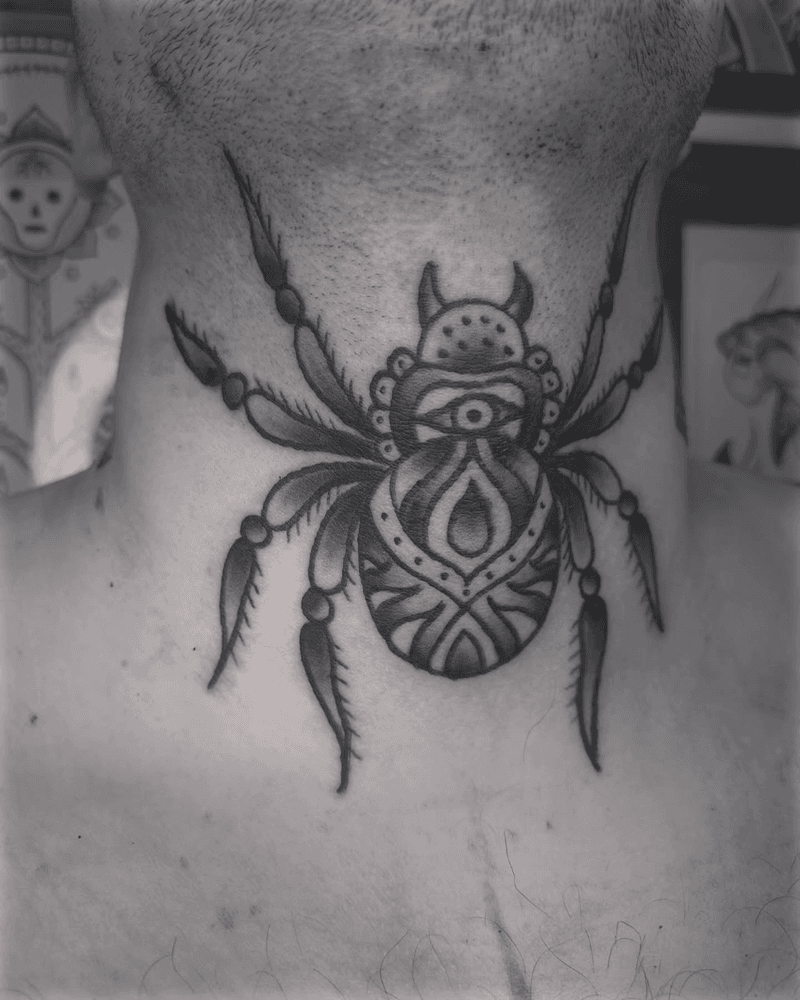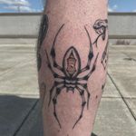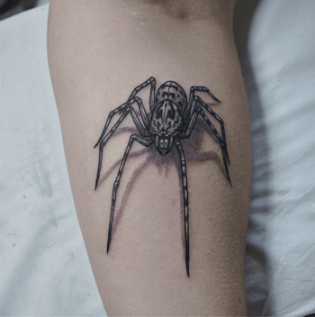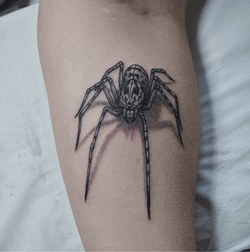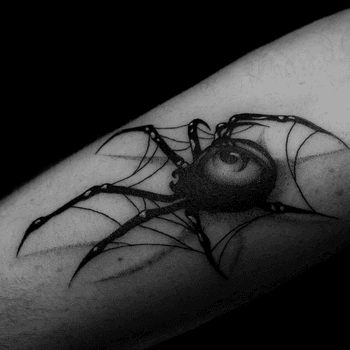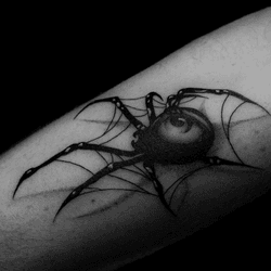 Spider and spider web tattoo art including traditional webs, realistic spiders, black widow designs, and ornamental arachnid compositions.