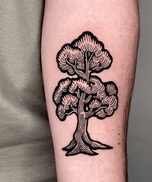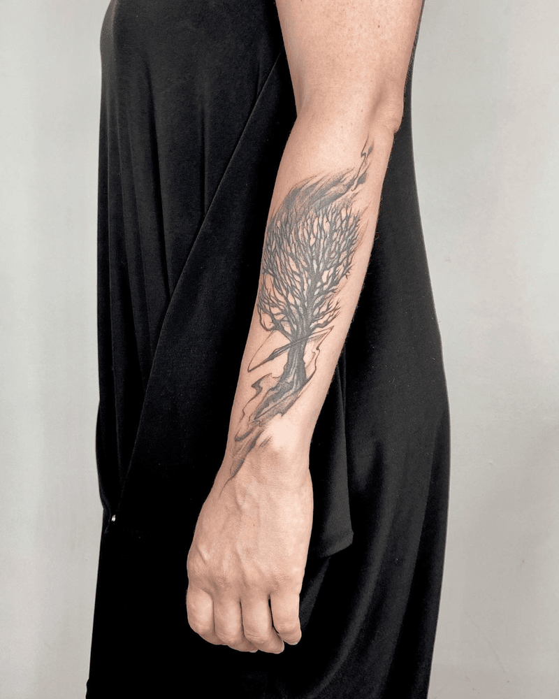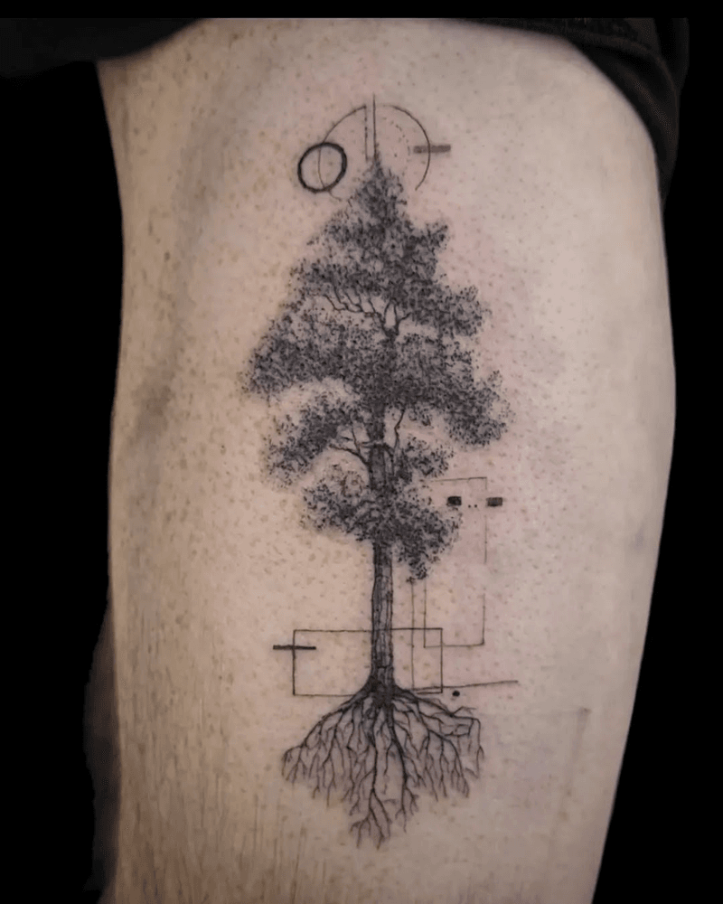 Tree and forest tattoo art featuring tree of life designs, oak trees, pine forests, and bonsai compositions. Explore realistic, geometric, and minimalist tree tattoo styles.