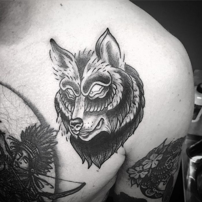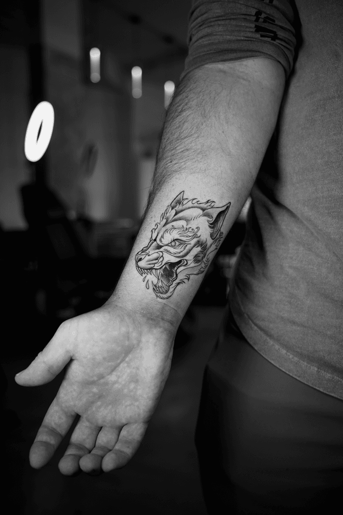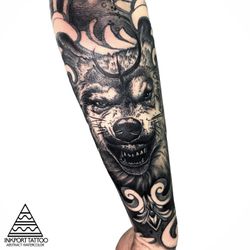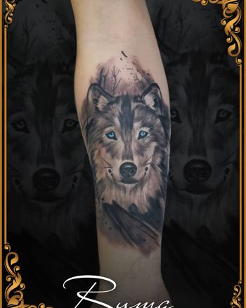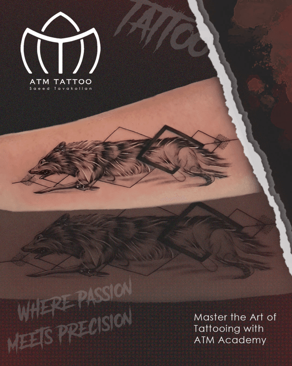 Wolf tattoo art featuring howling wolves, wolf pack scenes, geometric wolves, and realistic wolf portraits. Explore traditional, neo-traditional, and illustrative wolf tattoo styles.